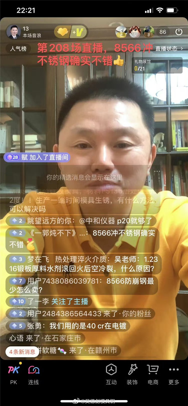 網(wǎng)友一郭燉不下在直播間評(píng)論說(shuō):8566沖不銹鋼確實(shí)不錯(cuò)。