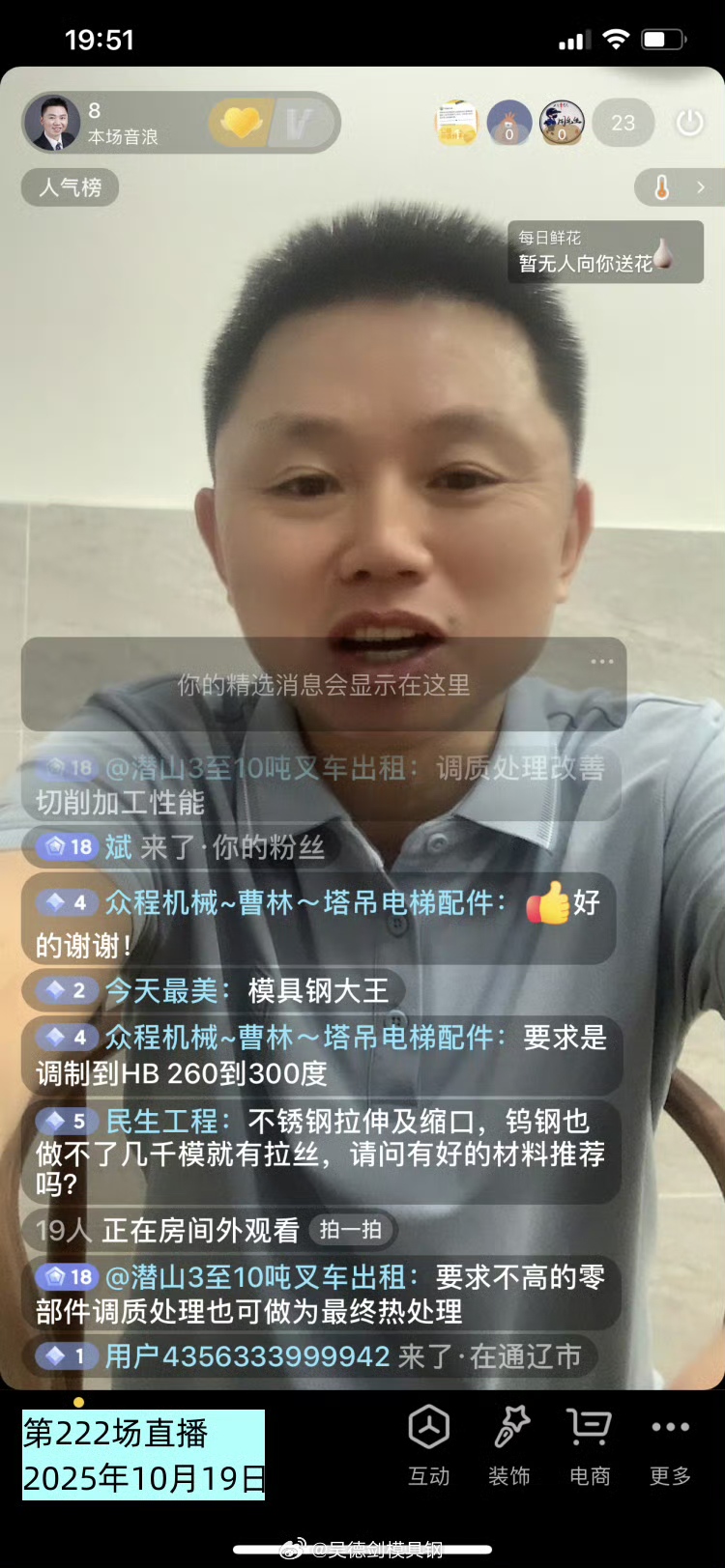 第222場直播間有網(wǎng)友提問說,不銹鋼拉伸及縮口,鎢鋼也做不了幾千模就有拉絲,請問有好的材料推薦嗎?