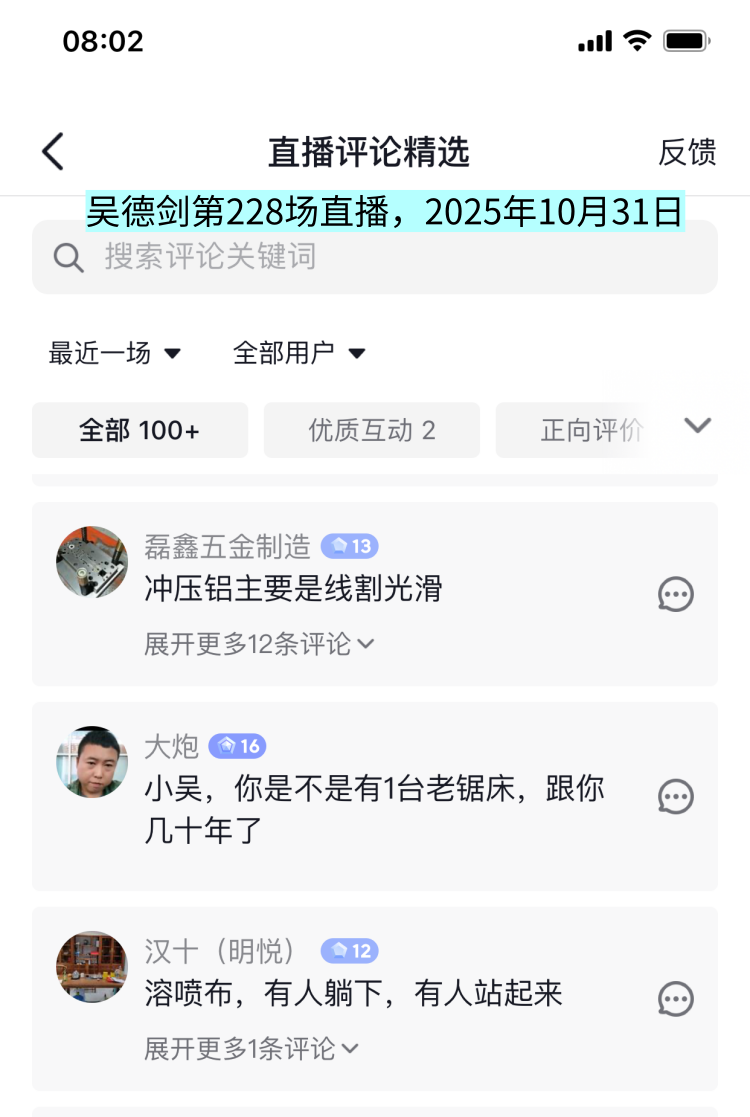 這場(chǎng)直播間,最讓我感到的評(píng)論是:“小吳,你是不是有1臺(tái)老鋸床,跟你幾十年了?!?