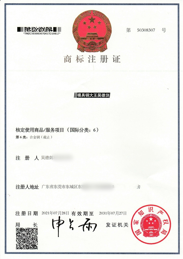 再說了,我已經(jīng)把吳德劍、吳德劍模具鋼、模具鋼大王吳德劍都注冊成了商標(biāo),而且真人露臉拍視頻、做直播,相當(dāng)于我是在用身家性命來擔(dān)保我的模具鋼質(zhì)量,能做到這一點(diǎn)的,全網(wǎng)沒有第二人,所以你大可以放心。
