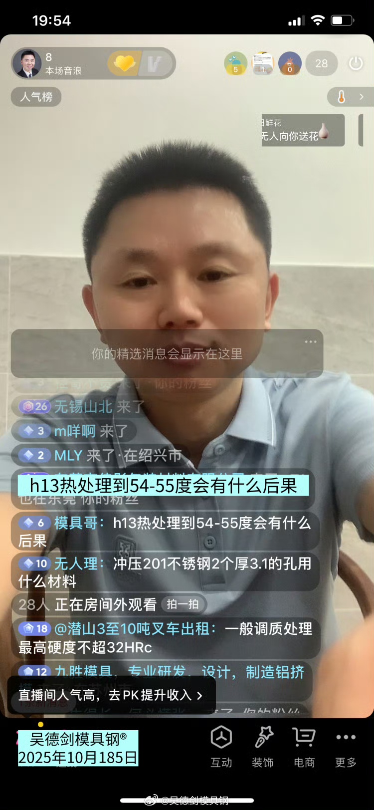 直播間網(wǎng)友提問:H13熱處理到54-55度會有什么后果?
